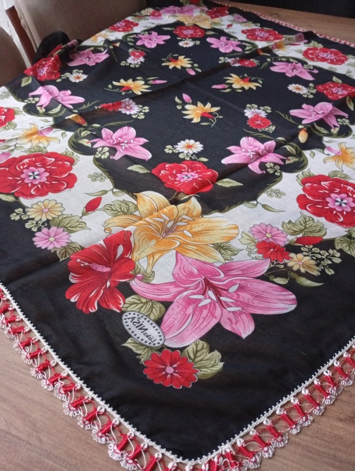Çiçek Desenli Dantel Kenarlı Bohem Kadın yazma