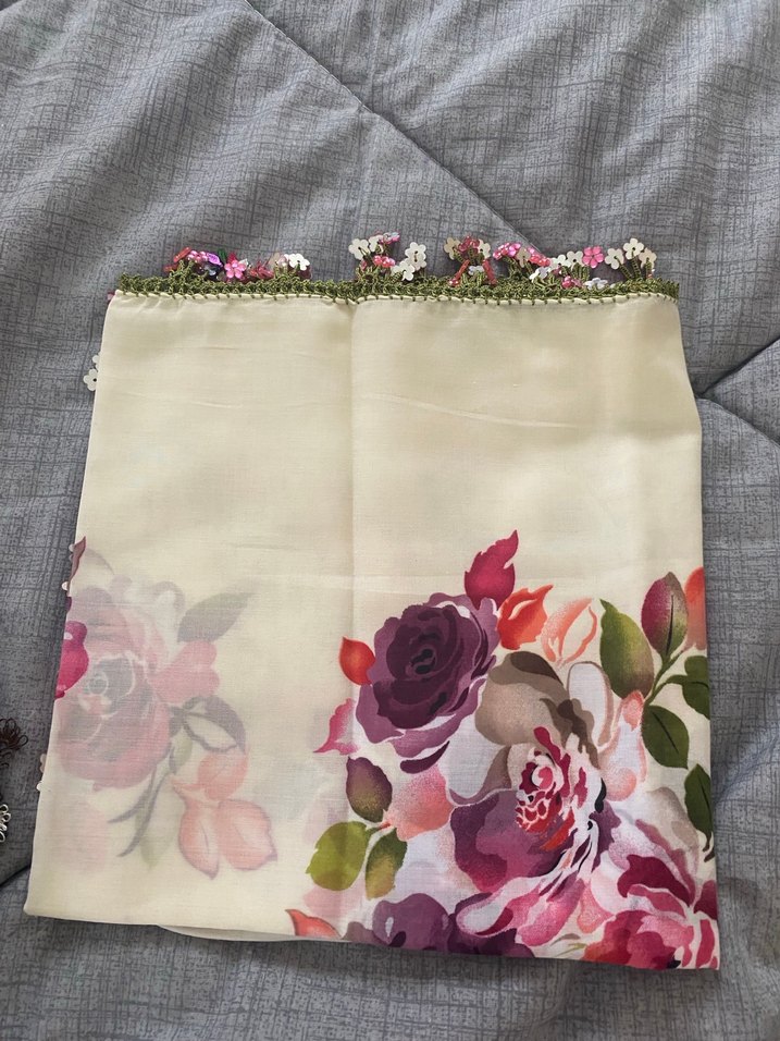 Çiçek Desenli Dantel Kenarlı Çok Renkli Kadın Fuları