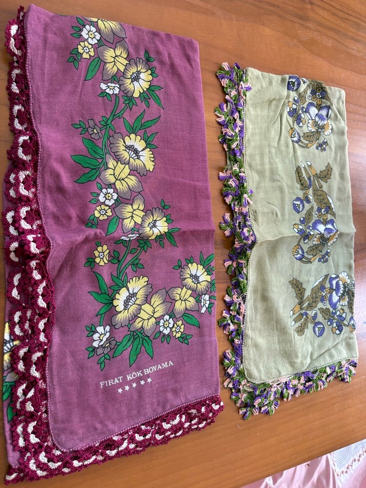 Çiçek Desenli Dantel Kenarlı el işi başörtü eşarp