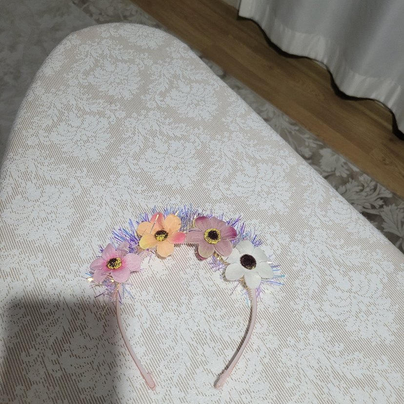 Çocuklar için pastel renkli çiçek süslemeleri ve dantel detaylı taç, bohem ve retro tarzda.