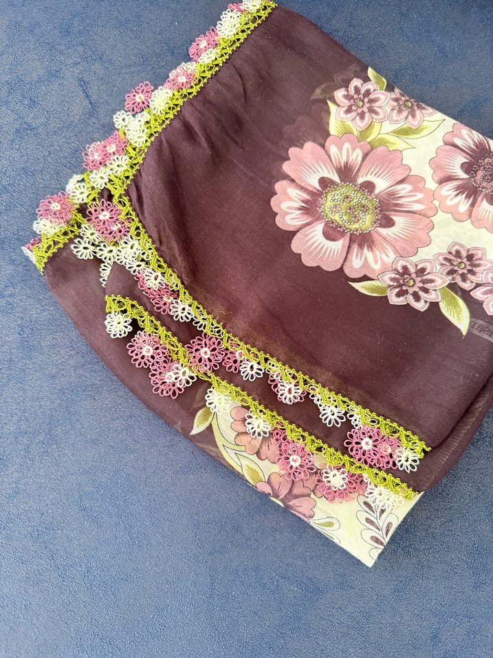 Çiçek desenli, çok renkli tekstil kumaş ve ince dantel detaylarıyla bohem ve retro tarzda kadın fularıdır. Yumuşak kumaşı ve renkli görünümüyle dikkat çeker. Yepyeni iğne oyası yazmadır hiç kullanılmamıştır