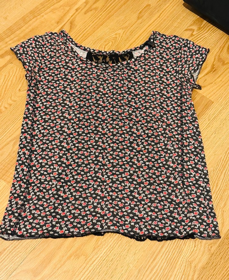 Çiçek Desenli Dantelli Tişört