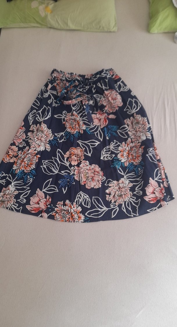 Bohem tarzda, Beli lastikli belden açmalı diz altı etek
