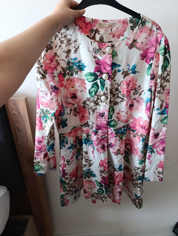 Uzun kollu, düğmeli önü ve yuvarlak yaka detaylı, pastel çiçek desenli bol kesim hamile bluzu. Yumuşak sentetik kumaştan yapılmıştır, günlük kullanıma uygundur.