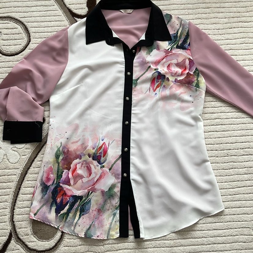 Çiçek Desenli Düğmeli Kadın Gömlek