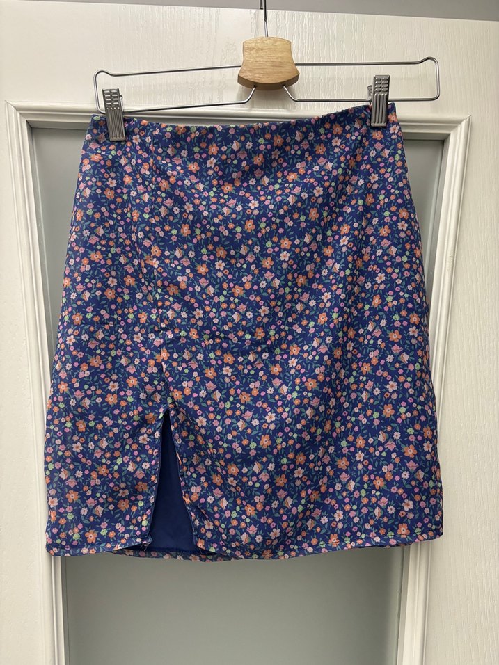 Çiçek Desenli Düğmeli Mavi Mini Etek