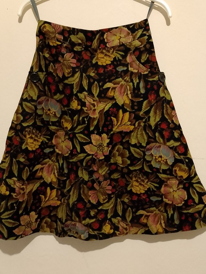 Bohem tarzda, düğmeli ve bol kesimli hamile eteği. Koyu renkli, çok renkli çiçek desenli ve midi boyda, günlük kullanıma uygun.