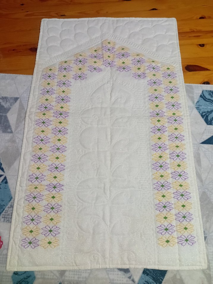 simli kumaş üzerine işlemeli seccade el emeği