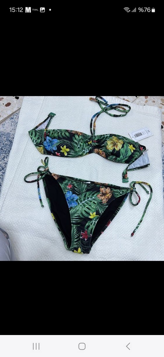 Çiçek desenli, elastik yapılı, ince askılı bikini, cesur ve renkli sahil tarzı için uygun.markası la playa etiketini kopardım ama sıfır kullanılmamıştır