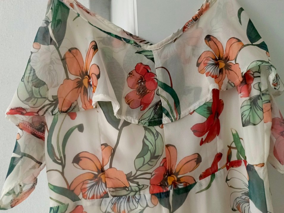 , çiçek desenli şifon kumaştan, volan detaylı ve bohem tarzda, günlük kullanım için uygundur.