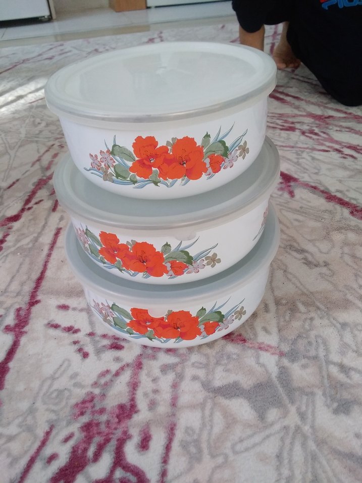Çiçek Desenli emaye Saklama Kabı Seti