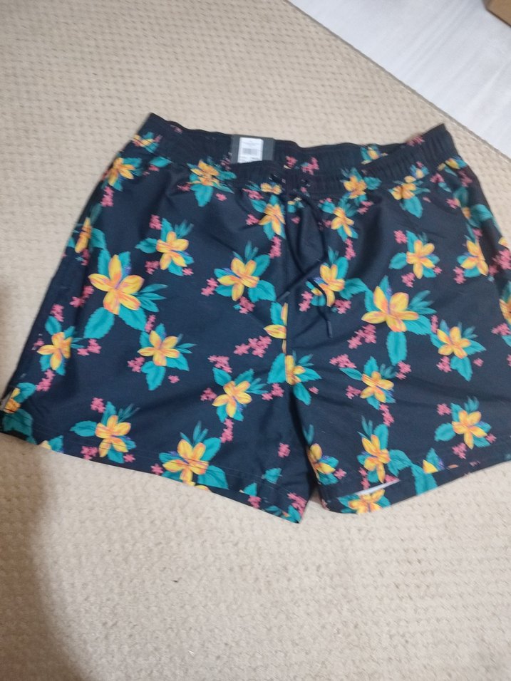 Sentetik kumaştan, çiçek desenli, düğmeli ve bol kesim erkek mini deniz şortu.sıfır ve etiketli... çok kaliteli
