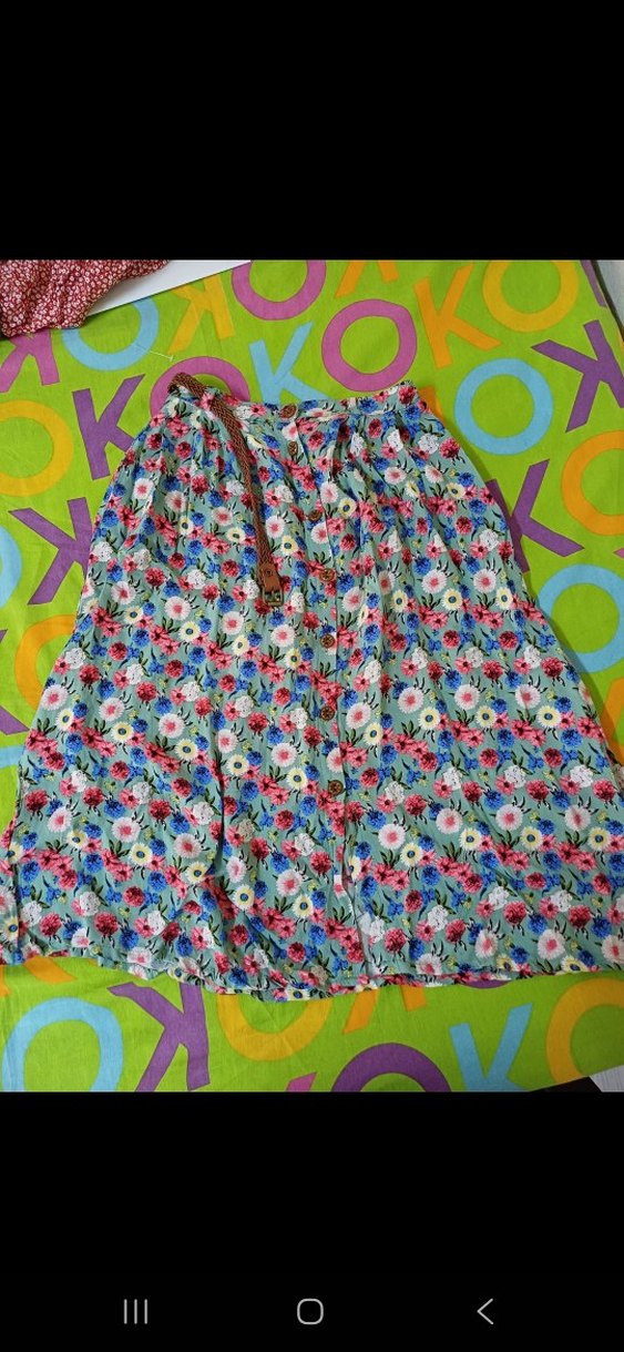 Renkli, çiçek desenli, düğmeli etek.Günlük kullanıma uygundur.