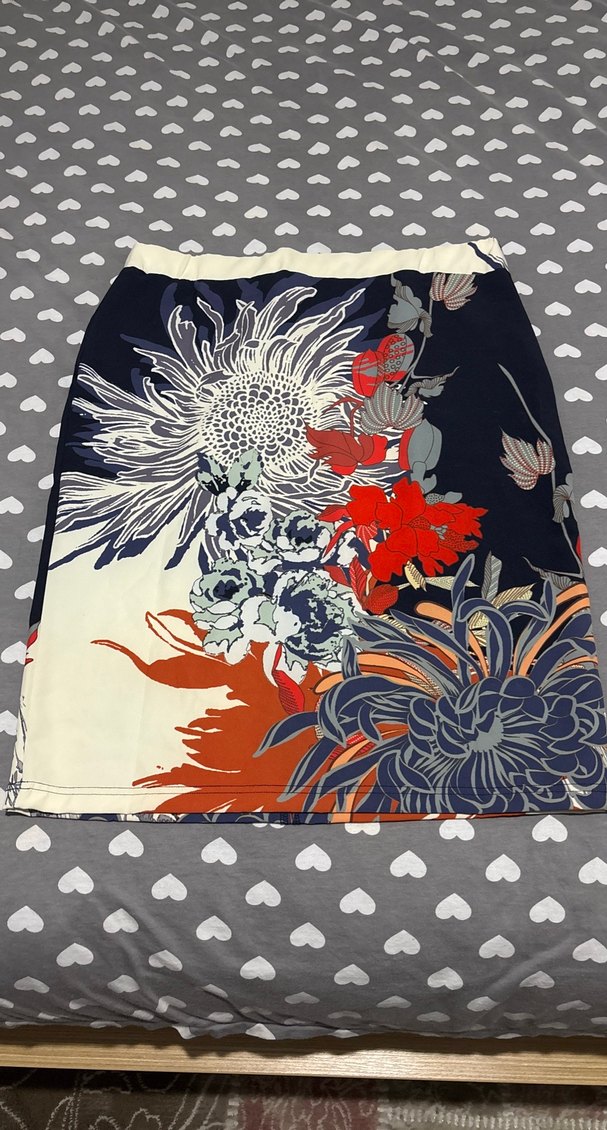 Koyu çok renkli çiçek desenli, drapeli midi ve vücuda oturan etek , bohem tarzını yansıtır.