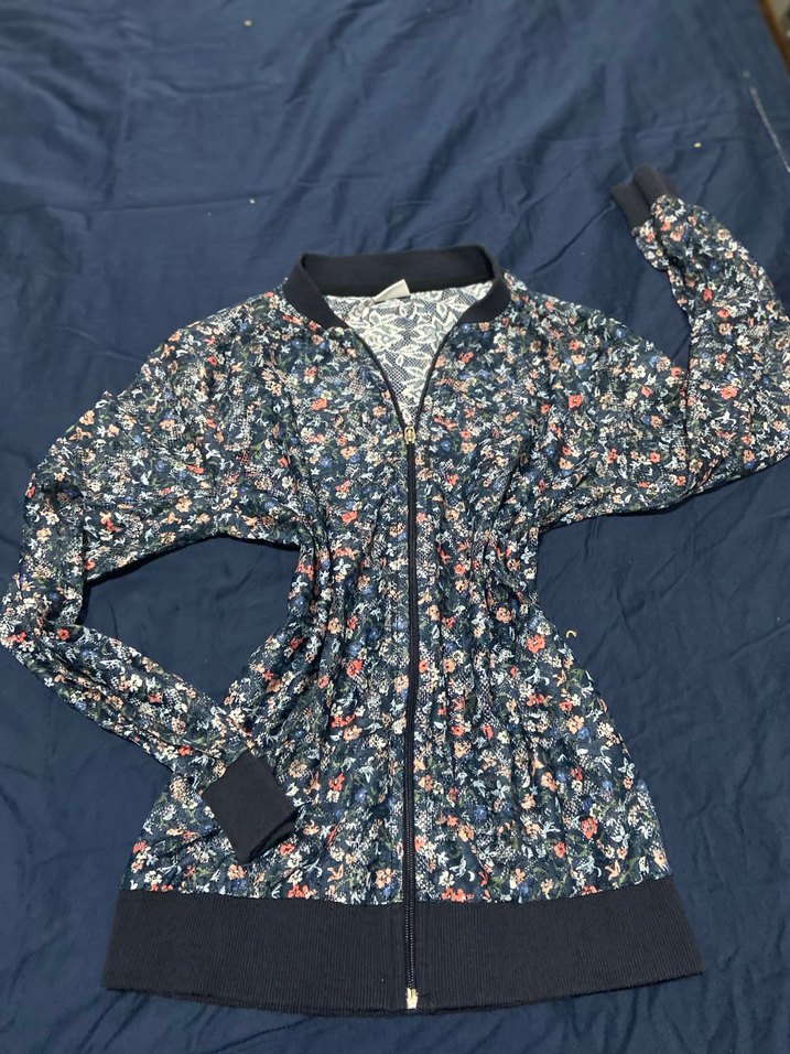 Çiçek Desenli Fermuarlı Kadın Ceket