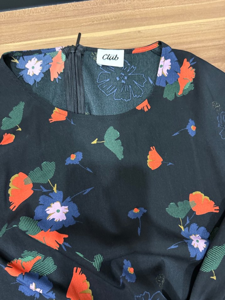 Kadınlar içinkısa volan kollu, yuvarlak yaka Koyu renkli çok renkli çiçek desenli, fermuarlı sırt detayı ve yumuşak sentetik kumaştan üretilmiştir. Günlük sokak tarzına uygun.