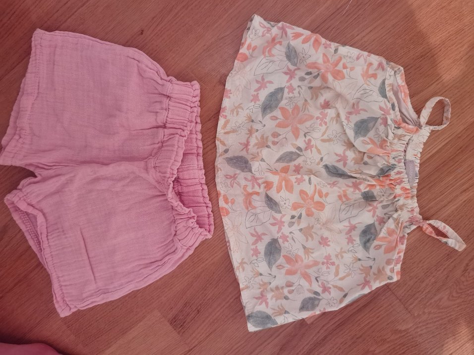 Kolsuz bebek kız takımı, pastel pembe fırfırlı alt ve çiçek desenli üstten oluşur. Yumuşak ve rahat kumaş, sıcak hava için uygundur. 18/24 ay