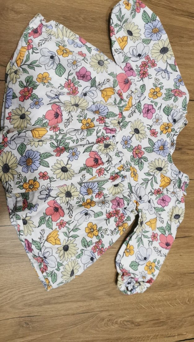 Pastel renkte çiçek desenli, fırfır detaylı yumuşak kumaştan bebek kız tulumu.