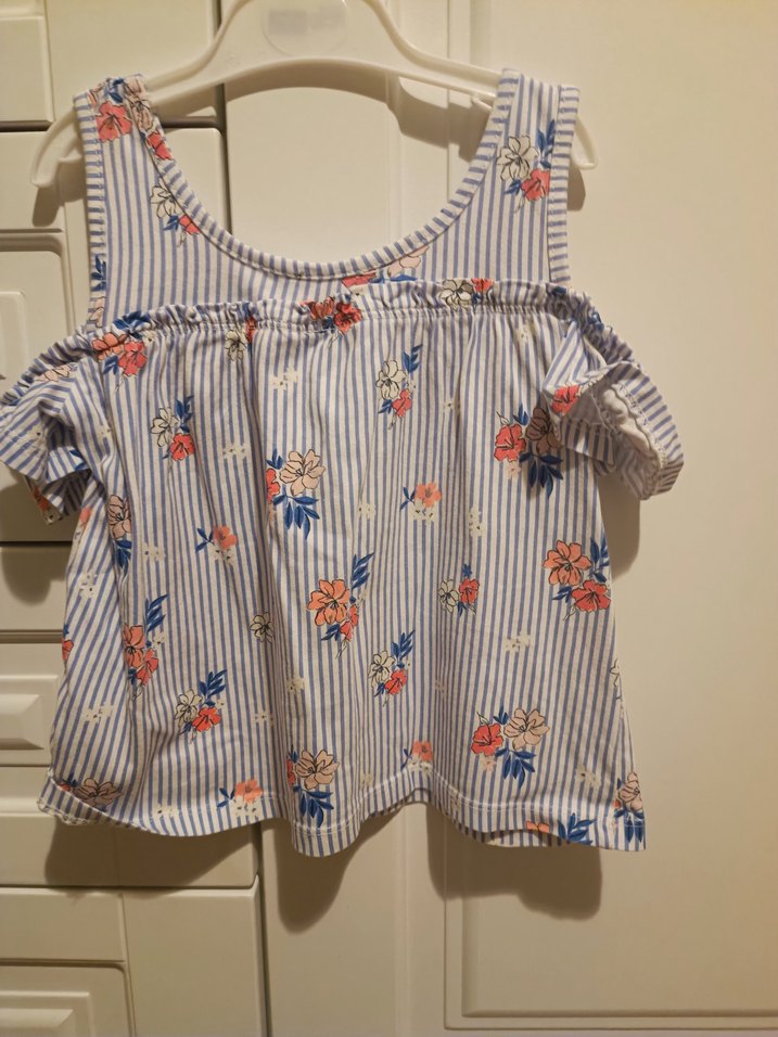 Çiçek ve çizgili desenli, askısız ve kolsuz elbise. Bol kesim ve fırfır detaylı, bohem tarzda çok renkli tasarım.