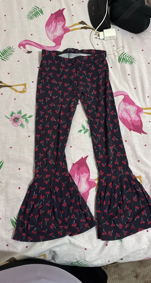 Çiçek Desenli Fırfırlı Kadın İspanyol Paça Pantolon