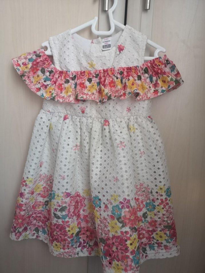 Beyaz renkli, çiçek desenli ve fırfırlı kız elbisesi. Askısız yakalı, kolsuz ve bol kesimdir. Bohem tarzını yansıtır.