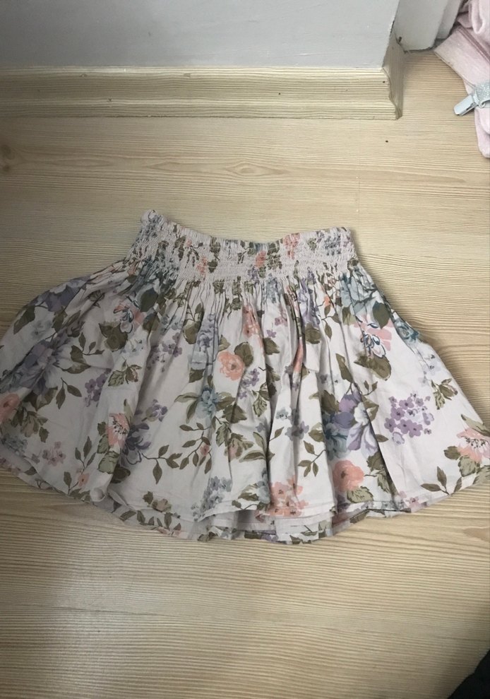 Yumuşak sentetik kumaştan, bol kesim ve fırfırlı detaylara sahip, pastel çiçek desenli bohem tarzı kız eteği.