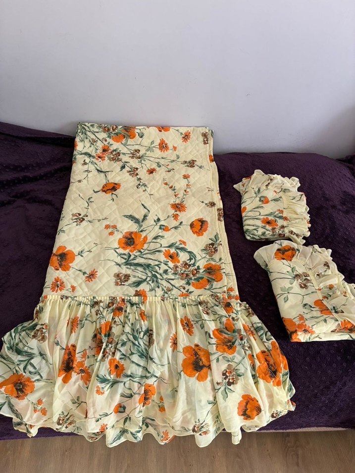 Çiçek Desenli Fırfırlı yatak örtüsü ve yastık kılıfları