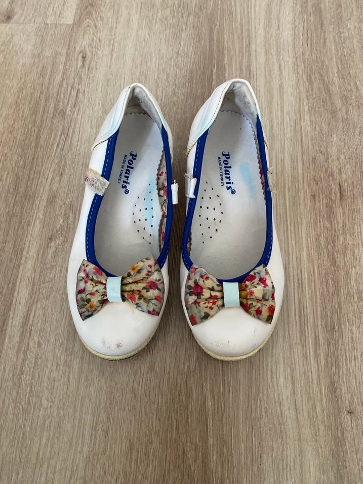 Çiçek Desenli Fiyonklu Beyaz Babet
