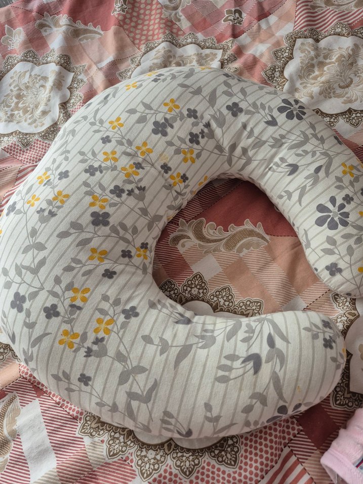 Çiçek Desenli Gri Emzirme ve Hamilelik Yastığı