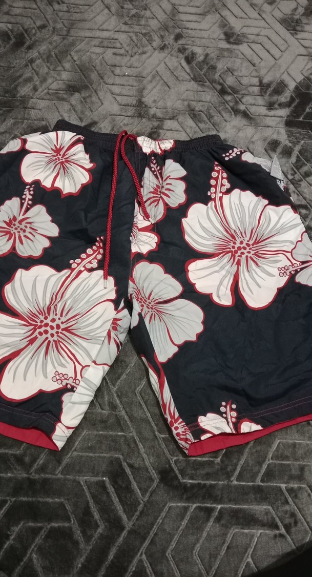 Gri renkli, çiçek desenli, bol kesim mini şort. Fermuarlı cepleriyle plaj ve günlük kullanıma uygun.çivt taraflı içi kırmızı arasında az sökügü var iç kısmında sadece