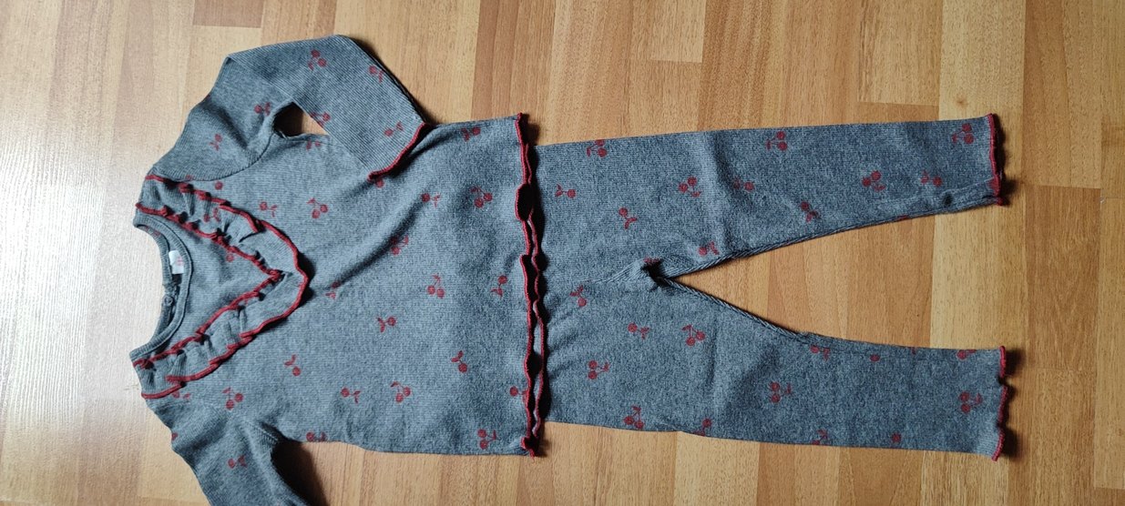 Çiçek Desenli Gri uzu. kollu fitilli takim