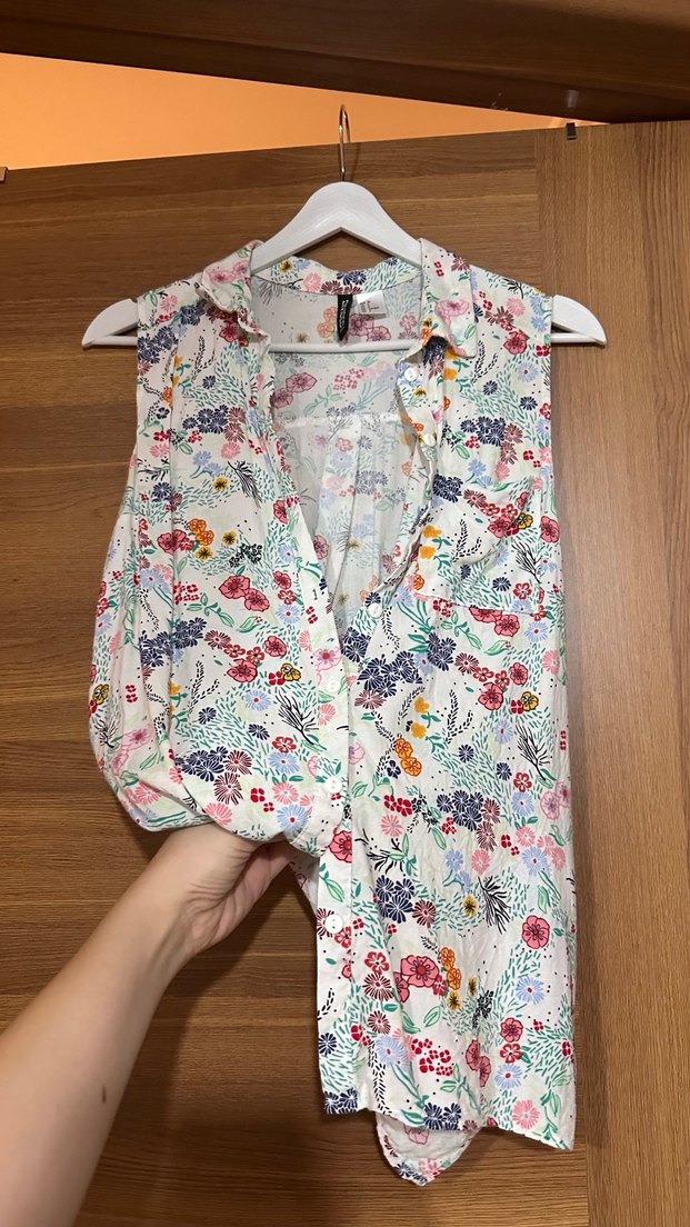Düğmeli, V yakalı, çiçek desenli bohem tarzında, kolsuz ve bol kesimli pastel renklerde bluz. Günlük kullanım için uygundur.