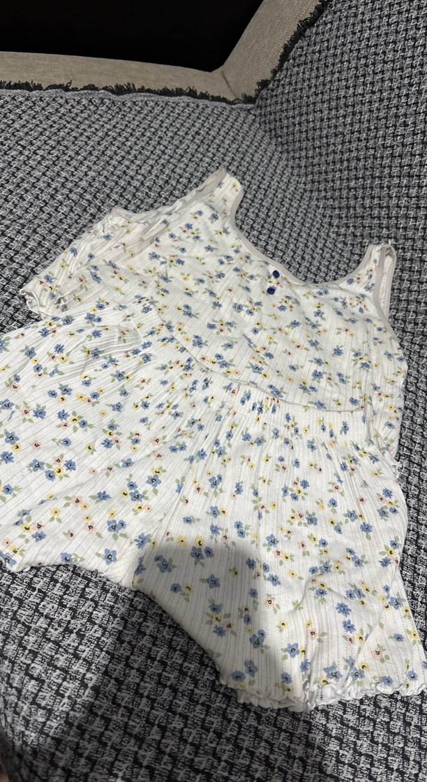 Çiçek desenli, askısız yakalı, bol kesim hamile ve emzirme geceliği. Midi boyda, rahat kullanım sağlar.