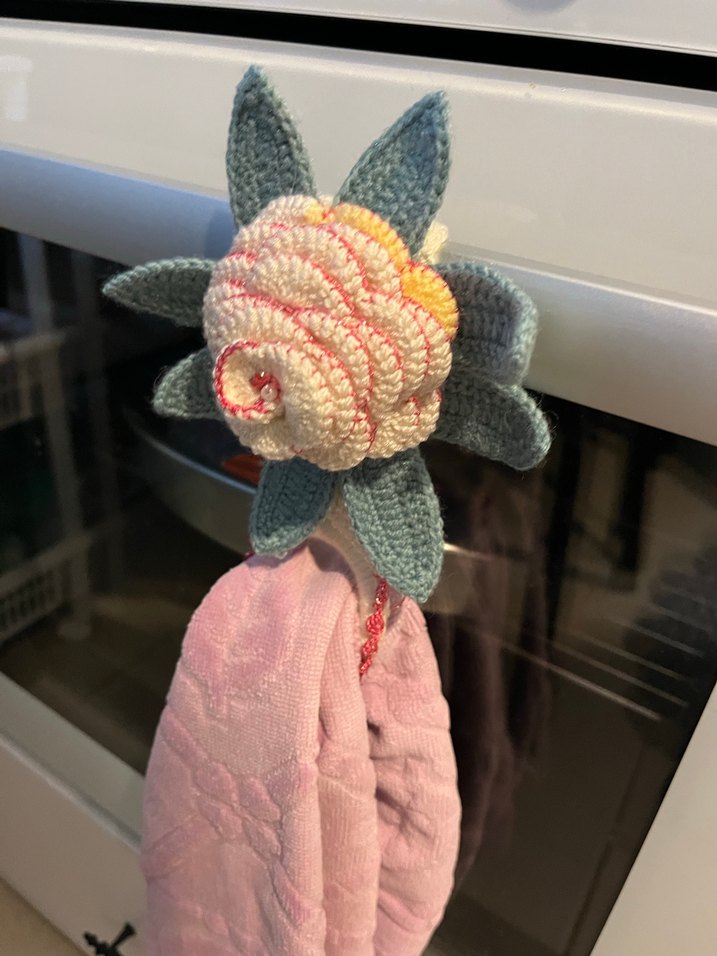 Çiçek desenli havlu askısı el örmesidir.