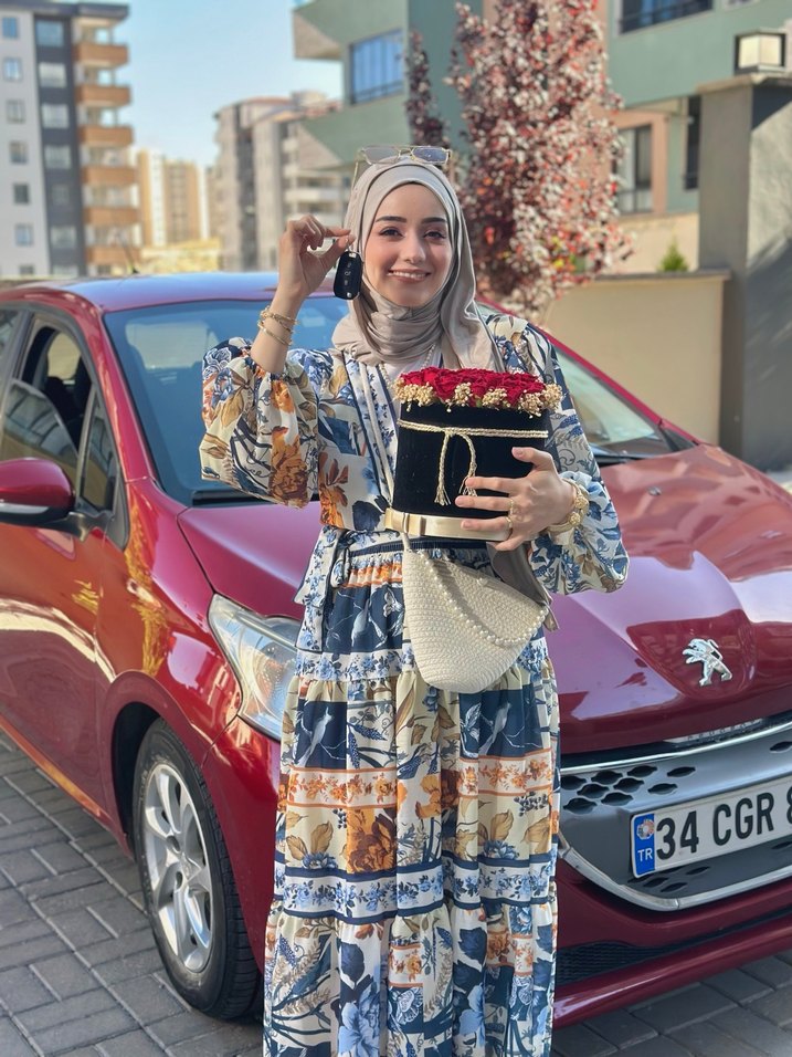 Çiçek desenli, uzun kollu ve kemerli, bol kesim bohem tarzda ikili takım. Hafif tonlarda rahat bir görünüm sunar. Eteği astarlı iç göstermez. Bluz kuşaklı. Çok rahat günlük kullanıma uygun. 36-38 beden uyumlu. Tertemiz elbise. Boyum 1.70 kilom 64