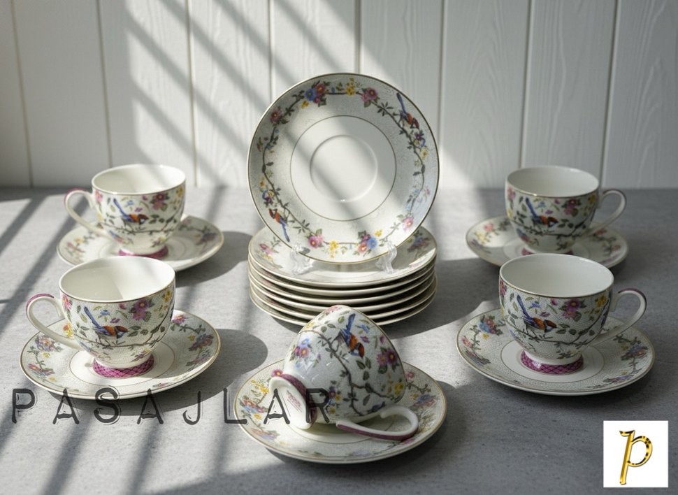 Çiçek Desenli İnce Porselen Fincan Takımı