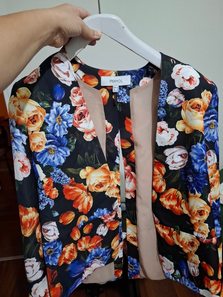 Çiçek desenli İPEKYOL BAYAN CEKETI