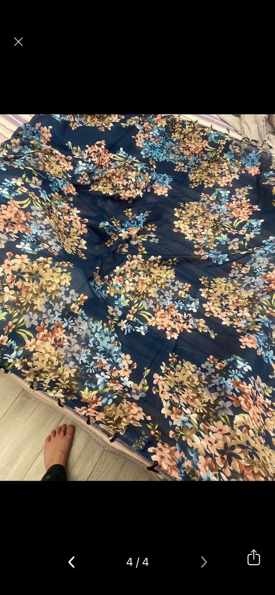 Kadınlar için çok renkli çiçek desenli, dökümlü şal. Yumuşak sentetik kumaştan, bohem ve retro tarzda.