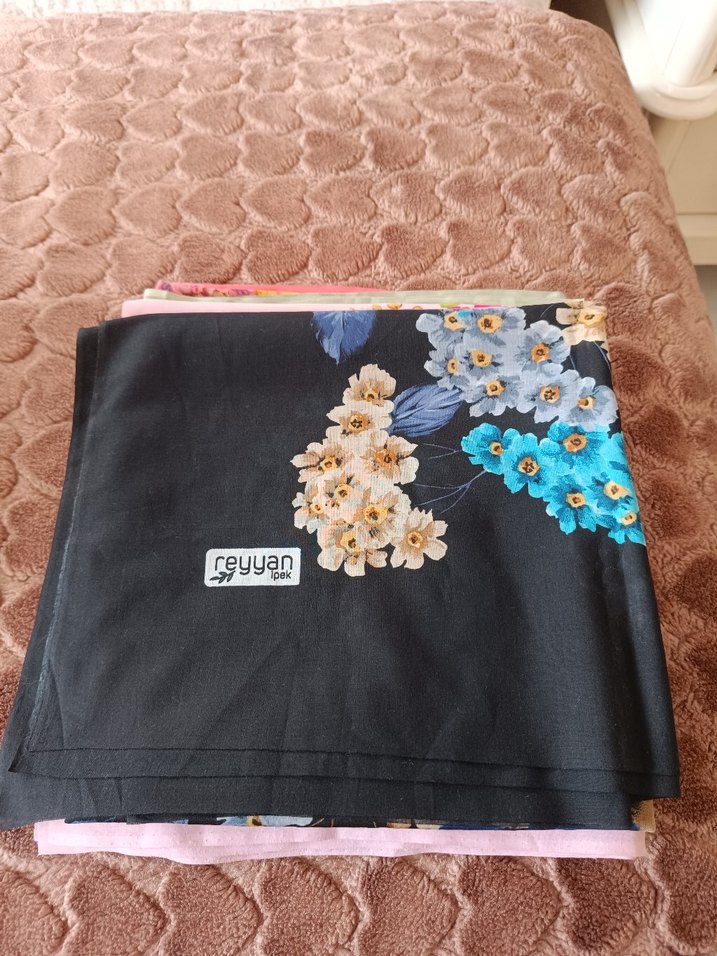 Kadınlar için koyu renk sentetik kumaştan, çok renkli çiçek desenli, bohem tarzda drapeli yazma . 'reyyan ' marka etiketi bulunur.