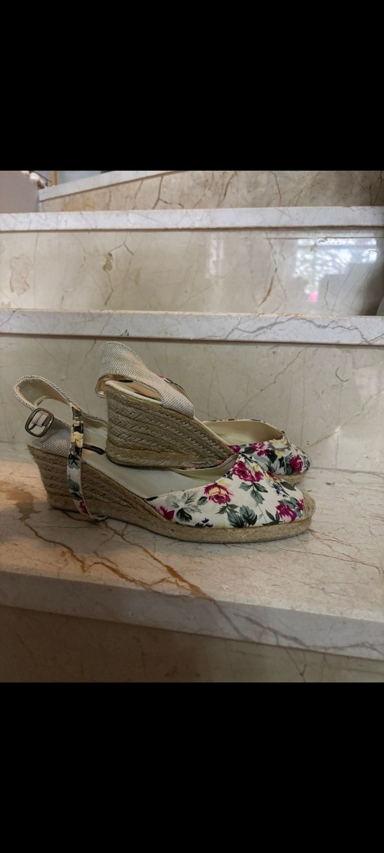 Çiçek Desenli Kadın Dolgu Topuk Sandalet