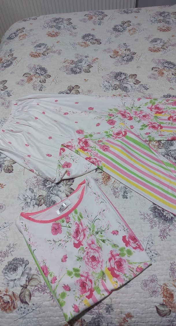 Çiçek Desenli Kadın Uzun Kollu Pijama Takımı