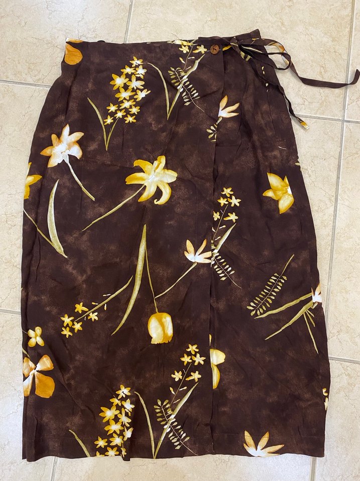 Kahverengi, çiçek desenli etek