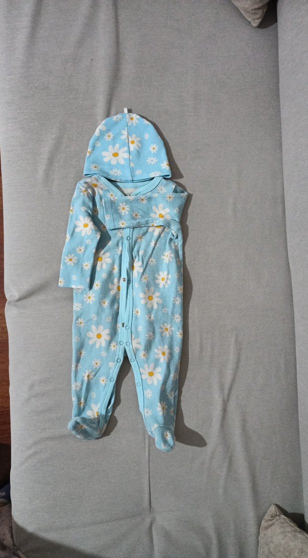 Uzun kollu, ve renkli çiçek desenli, yumuşak ve sıcak kumaştan yapılmış çıt çıtlı bebek tulumu. ve ayaklı tasarım içerir. son fotoğrafta sapkasindaki lekeyi çektim çıkada bilir