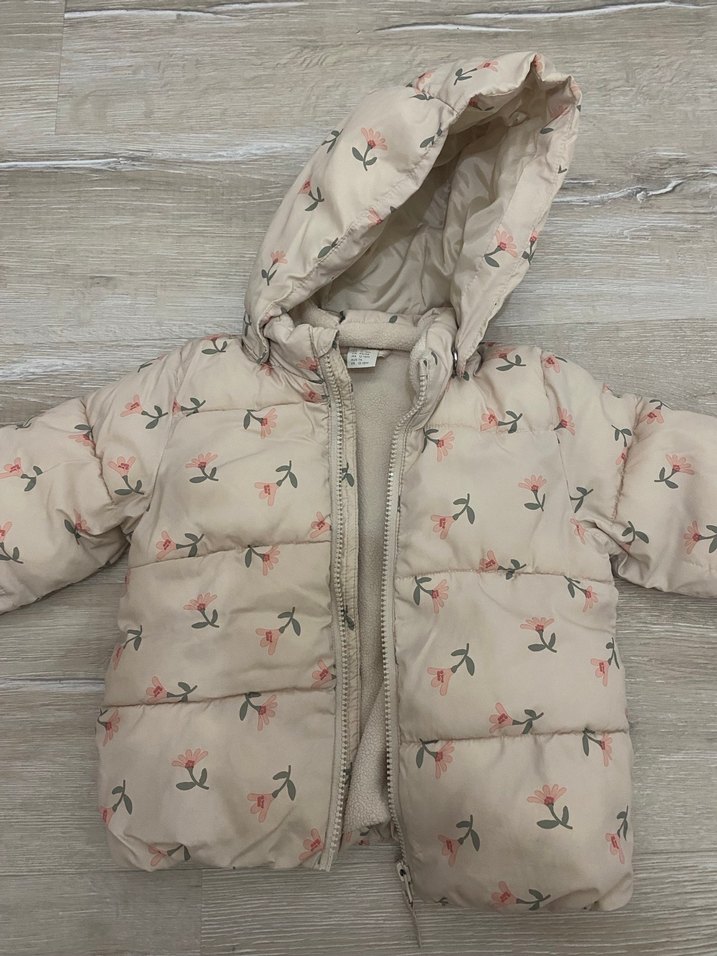 Kapüşonlu, çiçek desenli kız çocuk montu, yumuşak ve sıcak kumaştan üretilmiştir. Kürk detaylı ve fermuarlı, günlük kullanım için uygundur.