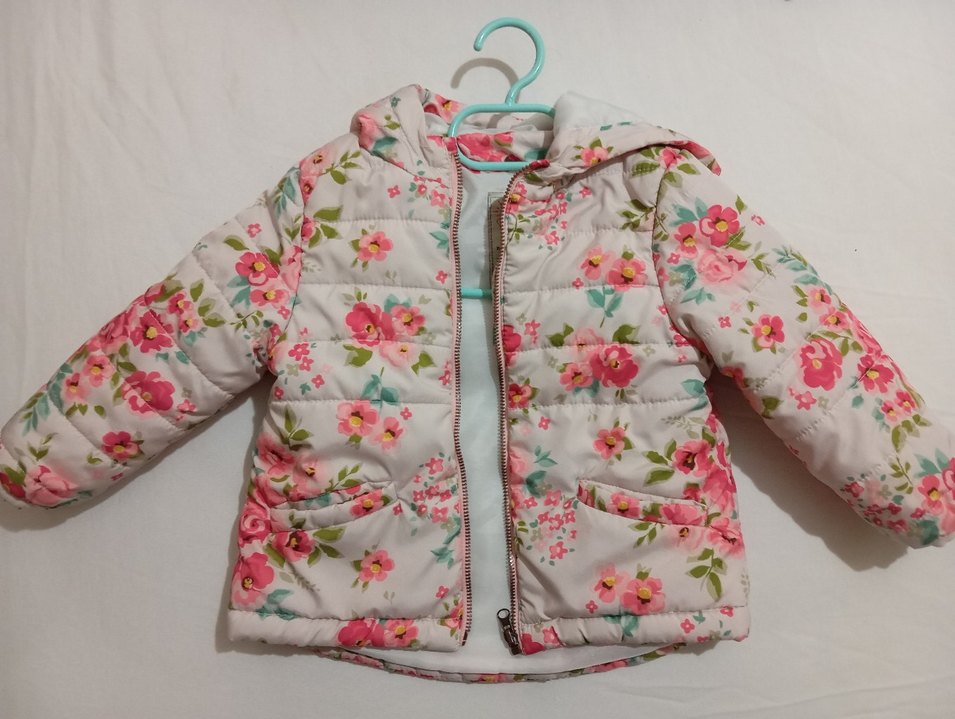 Fermuarlı, çiçek desenli kapüşonlu ve notched lapel detaylı, pastel renklerde kız montu, trend sokak stili için uygun. az kullanıldı kızım bir yaşında giydi iç astarda sökülme mevcut fiyatı uygun tutuyorum