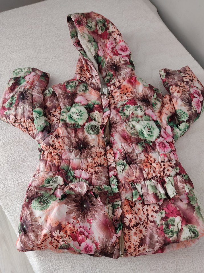 Renkli çiçek desenli, kapüşonlu ve düğmeli, bohem tarzda, kızlar için dar kesim mont. fermuar kisminda ufak bir dikis var .