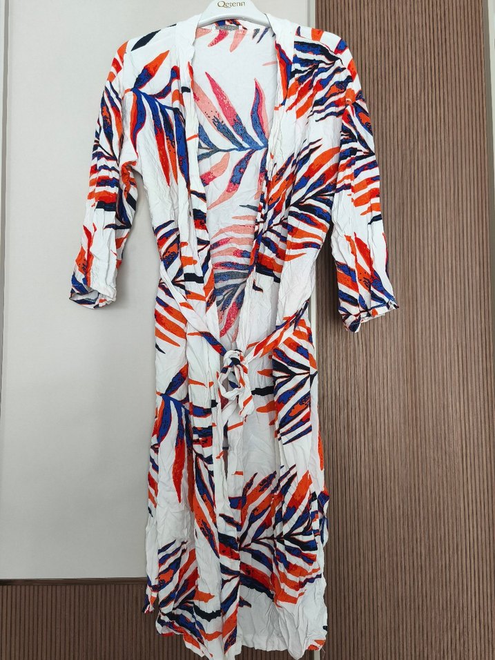 Çok kaliteli bir kumaşa sahip, tiril tiril aşırı rahat viskon kumaş. S ve M beden giyenlere tam olur. Hem sabahlık hem pareo hem de ince hırka olarak kullanılabilir. Tesettür giyinenler de tercih edebilir. Beli kemerli bağlanabilir, yanları kısa yırtmaç detaylı. Tertemiz hiçbir sorunu yok, kırışık olduğu için kendini çok belli etmese de ütülenince muazzam bir parça. Güzel günlerde kullanın :)