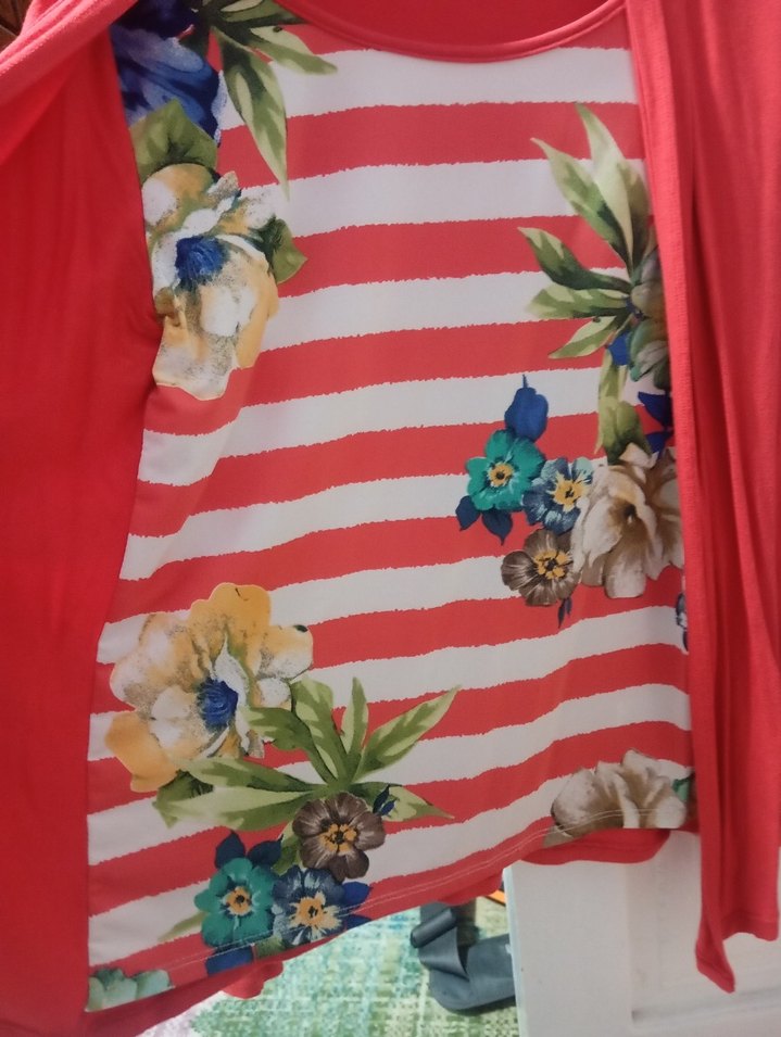 Renkli çiçek desenli kırmızı ceketli bluz bitişiktir kolları kısalabilir