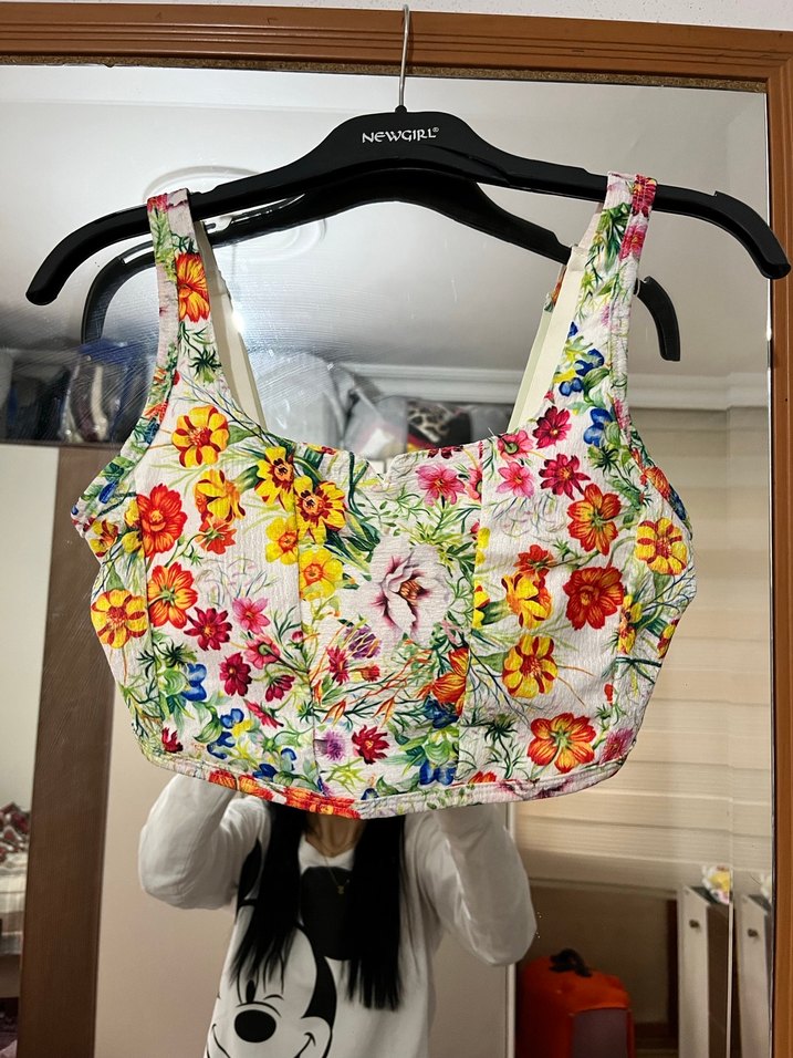 Çiçek Desenli Kısa Büstiyer