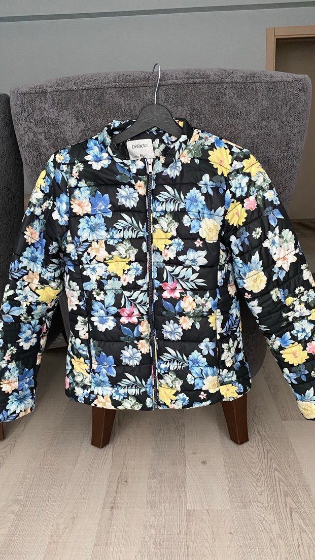 Çiçek Desenli Kısa Kadın Mont